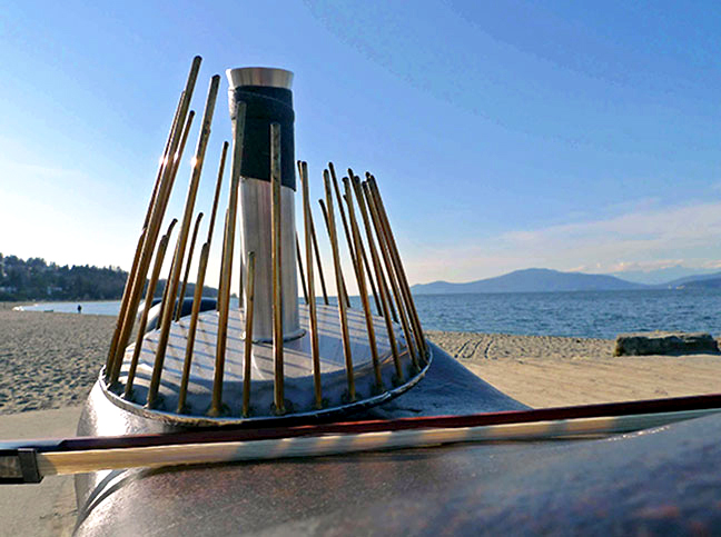 The music suggests a curious acoustic soundscape, like a folk music from an invented world, sometimes melodic, sometimes percussive, microtonal and not; setting the stage for a heightened experience of resonance and the images that natural sounds awaken. The surprising sounds of musical saws, waterphones, toy piano, tuned glass bottles, children’s toys, theremin and a multitude of found objects find their way into the Duo’s uncommon arrangements.