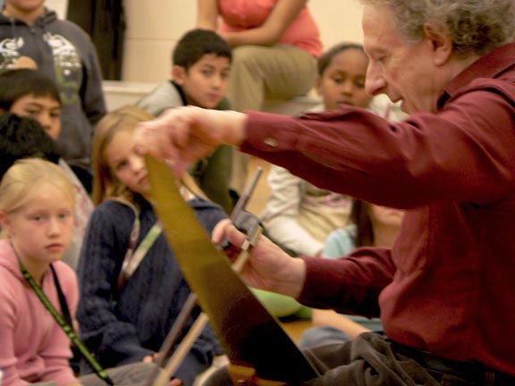 Internationally recognized performances, “Lost Sound, Found Sound” and “The Boy Who Wanted To Talk To Whales” toured schools, children’s festivals, colleges and universities. The unusual partnership of music, song & extended voice with a dramatic exploration of acoustic sound, invented instruments and storytelling became renown by educators for inspiring children to focus their natural creative abilities. Canadian tours, supported by the Canada Council for the Arts, brought the Minden Duo’s conviction of telling your own stories, and making your own music, to thousands of young people.